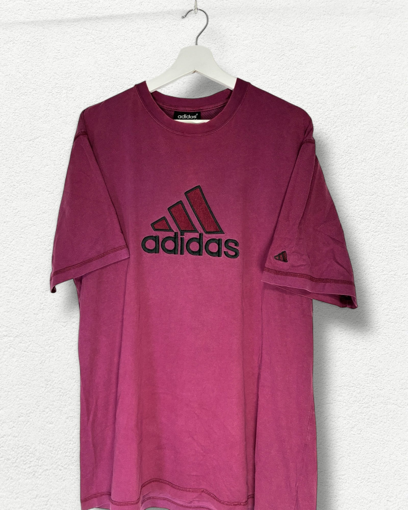 Camiseta Adidas XL con logo bordado, color borgoña y costuras marcadas. Estética two-thousands con flow urbano.