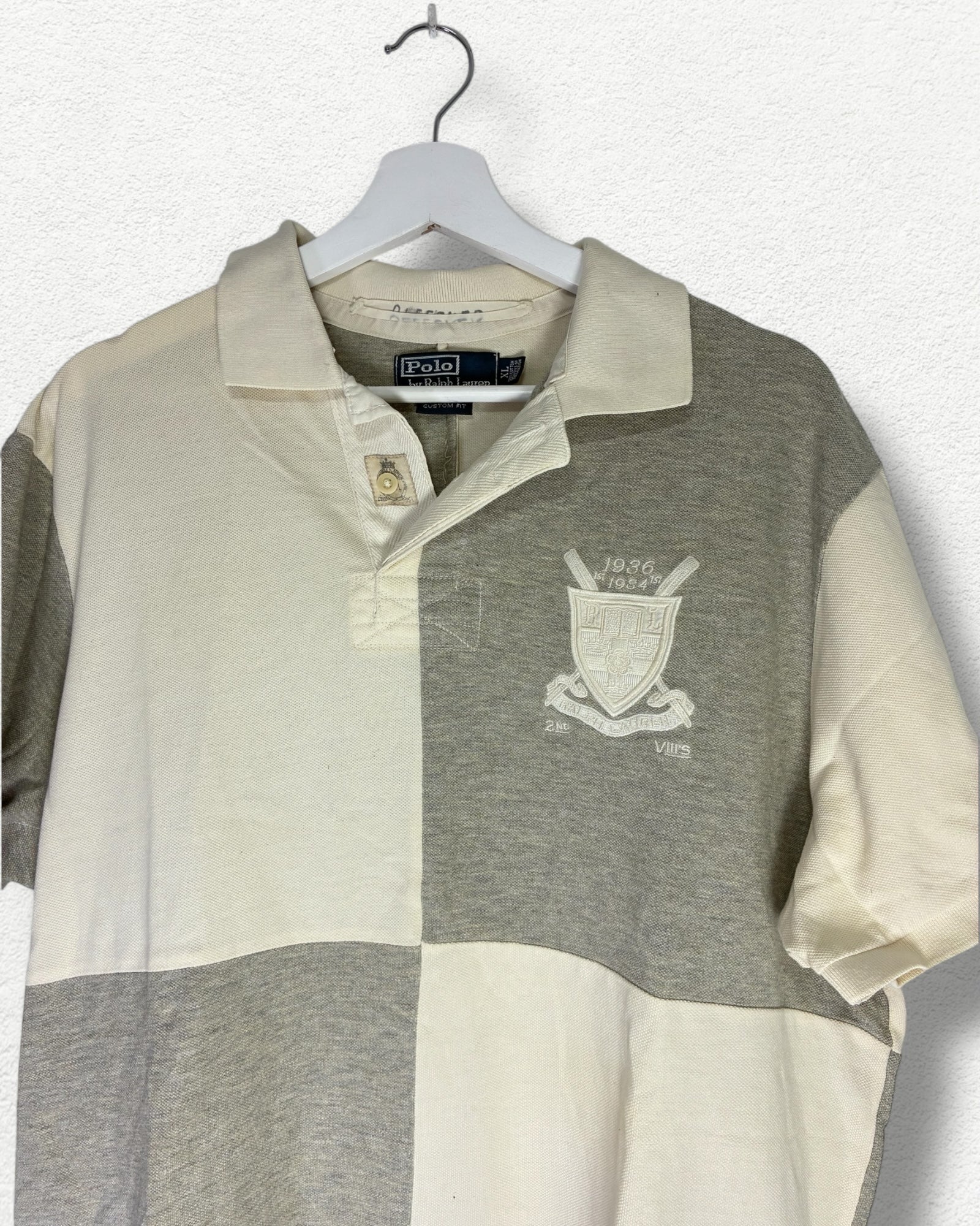 Polo vintage Ralph Lauren estilo rugby, con diseño patchwork y logo escudo. Una pieza top del estilo preppy americano de los 90.