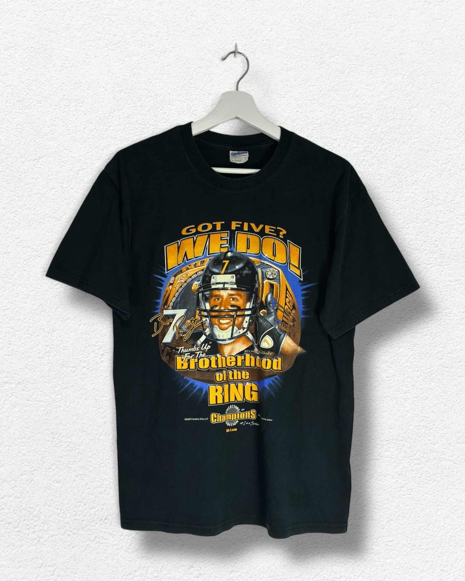 Camiseta vintage NFL Pittsburgh Steelers, con el mítico lema “Got Five? We Do!” conmemorando su quinto anillo. Una pieza de coleccionista con todo el estilo del fútbol americano.